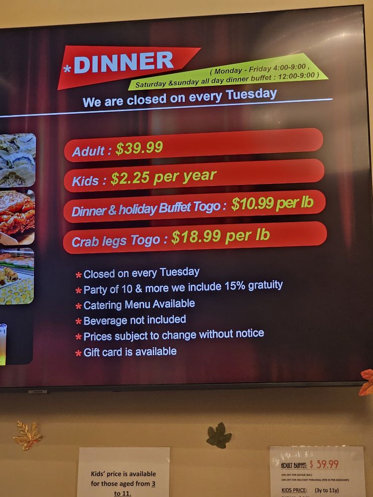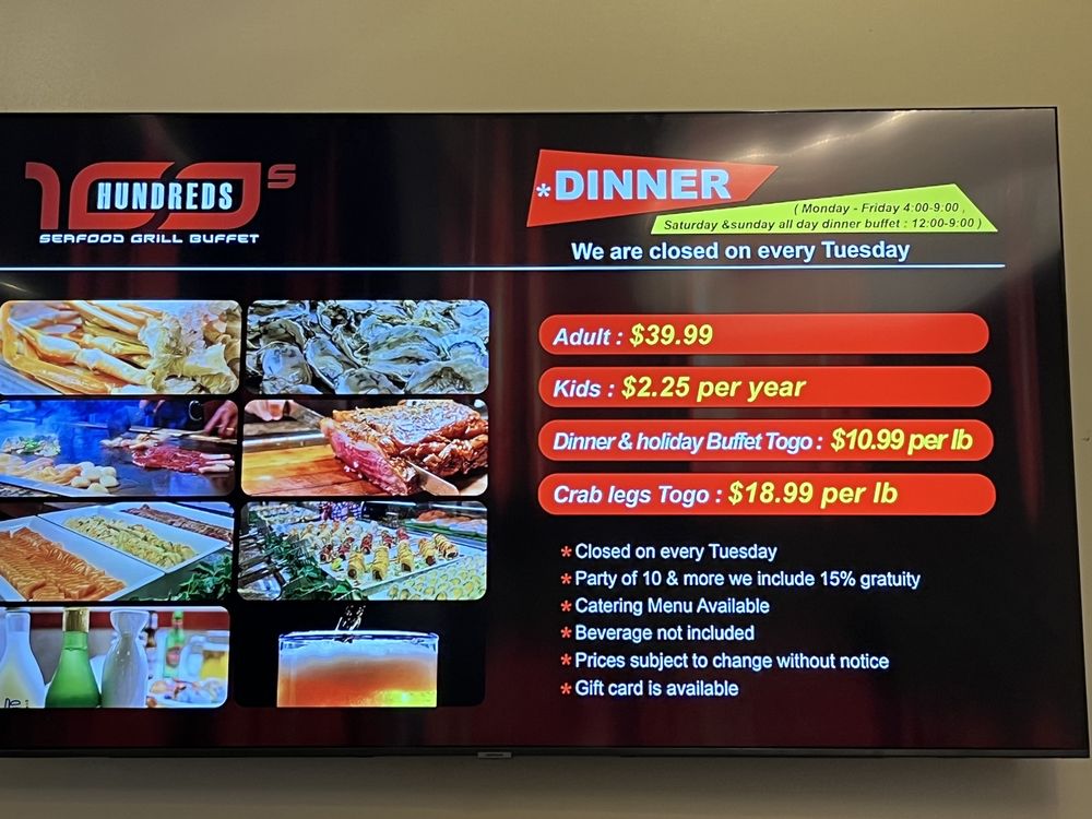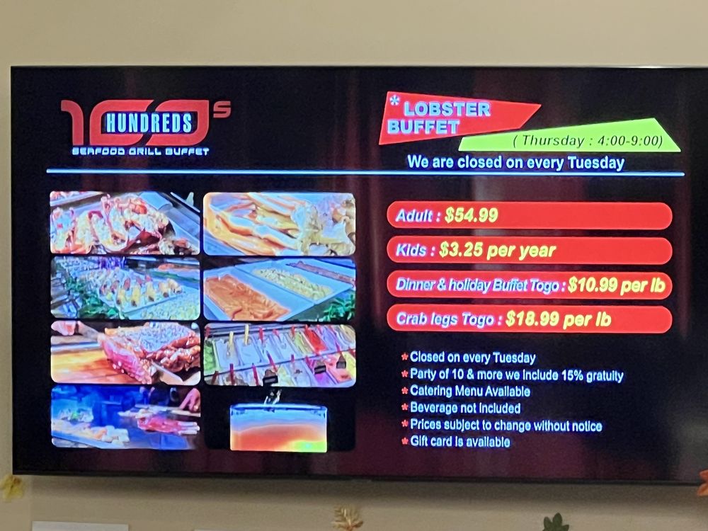 100s Seafood Grill Buffet, located in San Diego, offers a trendy and classy dining experience with a wide range of menu options. The restaurant provides vegan choices and is wheelchair accessible, making it inclusive for all guests. The appetizers like Chicken Wings and Tempura Shrimp set the tone for a delectable meal. The Fried Rice and Lo Mein dishes showcase a variety of flavors, catering to different preferences. Customer reviews highlight the quality of seafood options, especially the crab legs and lobster. The ambiance is described as busy but inviting, with excellent service and a clean environment. With all-you-can-eat specials featuring lobster and crab legs, 100s Seafood Grill Buffet is a must-visit destination for seafood enthusiasts. The clean and modern interior design, along with a diverse menu selection, sets this restaurant apart from traditional buffets in the area.